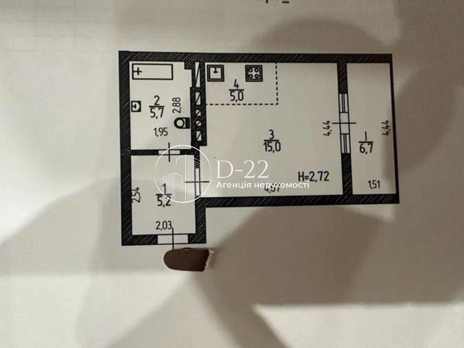Квартира студія, загальна площа 38 кв. м., кухня 8 кв. м..