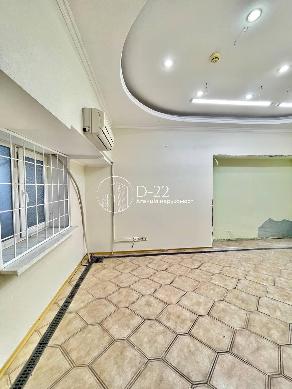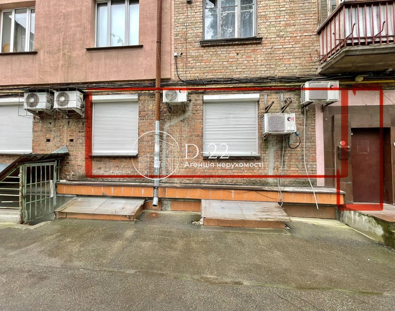 Продаж, Печерський район, бульвар Дружби народів, 13 (Миколи Міхновського), добротна цегляна сталінка, приміщення 146 м кв на першому поверсі + цоколь. Вхід/в'їзд з вул. Кудри (Д. Маккейна). На першому поверсі площа 38 м кв, кімната відділена металопластиковою перегородкою, є батарея централізованого опалення. Цокольний поверх – 108 м кв, включає в себе хол, три окремі кімнати, комору, кухню, санвузол, є два вікна (хол і кімната). Ремонт: декоративне освітлення, стіни – шпалери під фарбування, на підлозі плитка, світильники денного світла, кондиціонери, заведено оптоволоконний інтернет, сигналізація, домофон. Встановлена припливно-витяжна вентиляція. Сусіди: дитяча школа "Малятко", банк, магазини, меблевий салон "Дім Меблів".До метро "Звіринецька" 5-10 хв пішки,поруч декілька зупинок громадського транспорту, зручна транспортна розв"язка до головних автомагістралей міста.