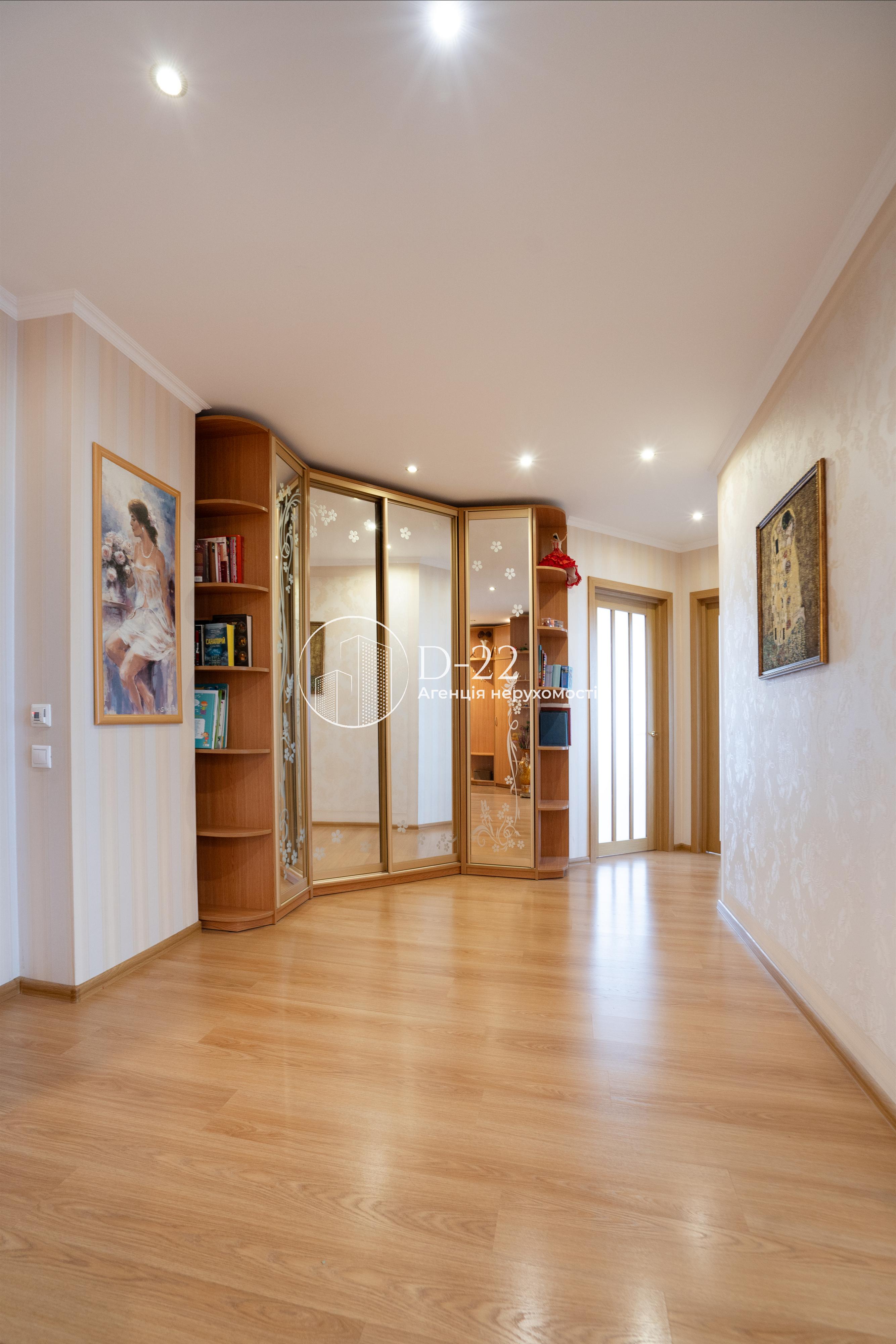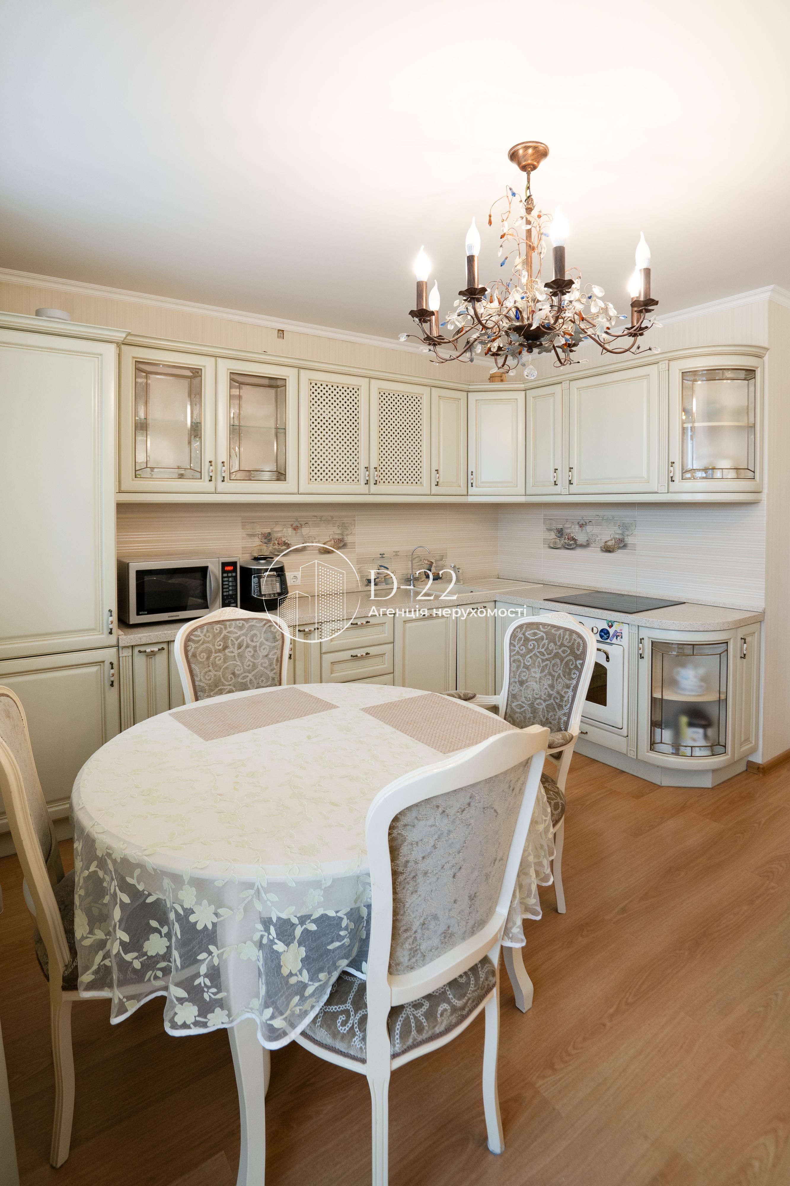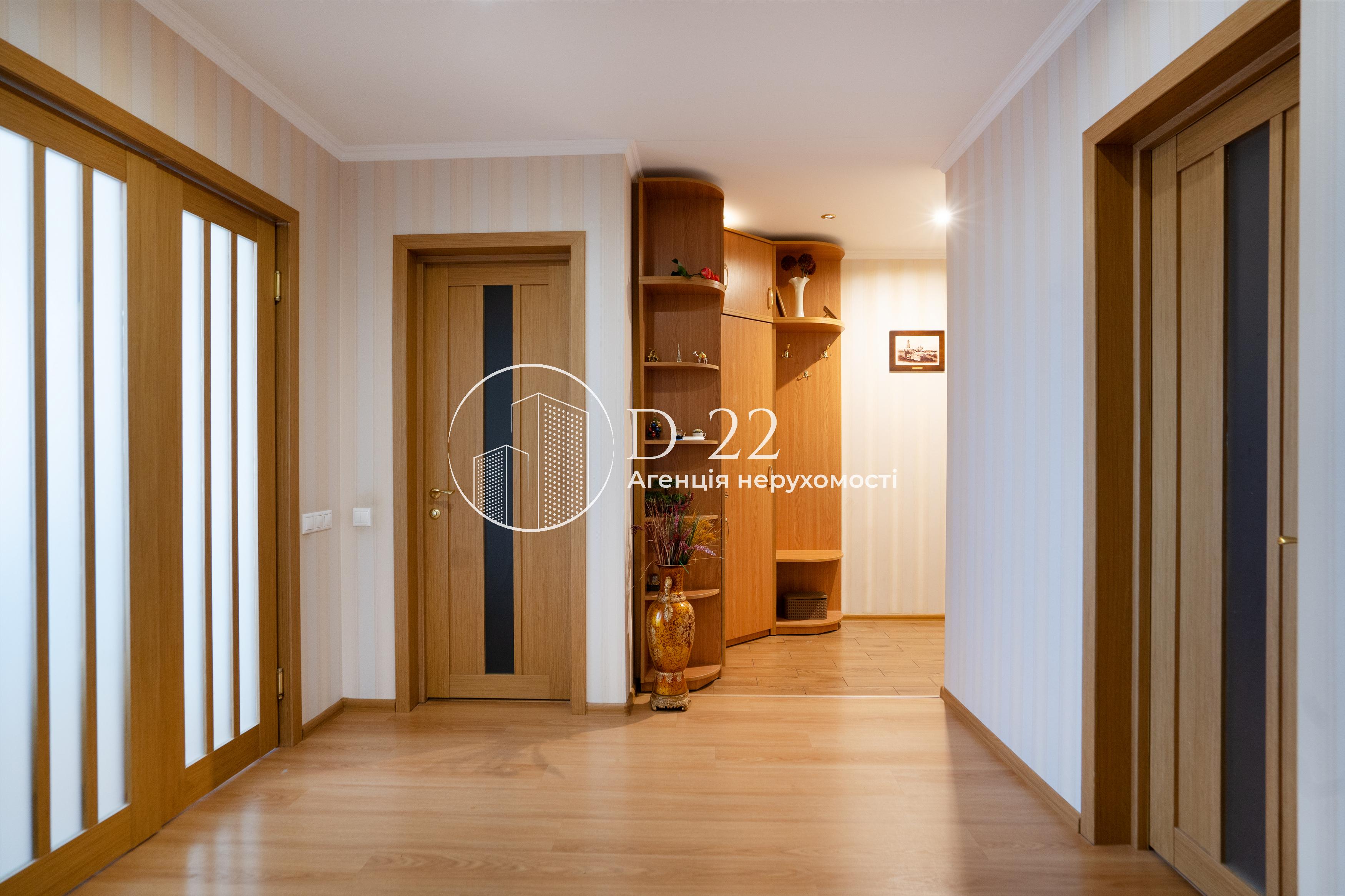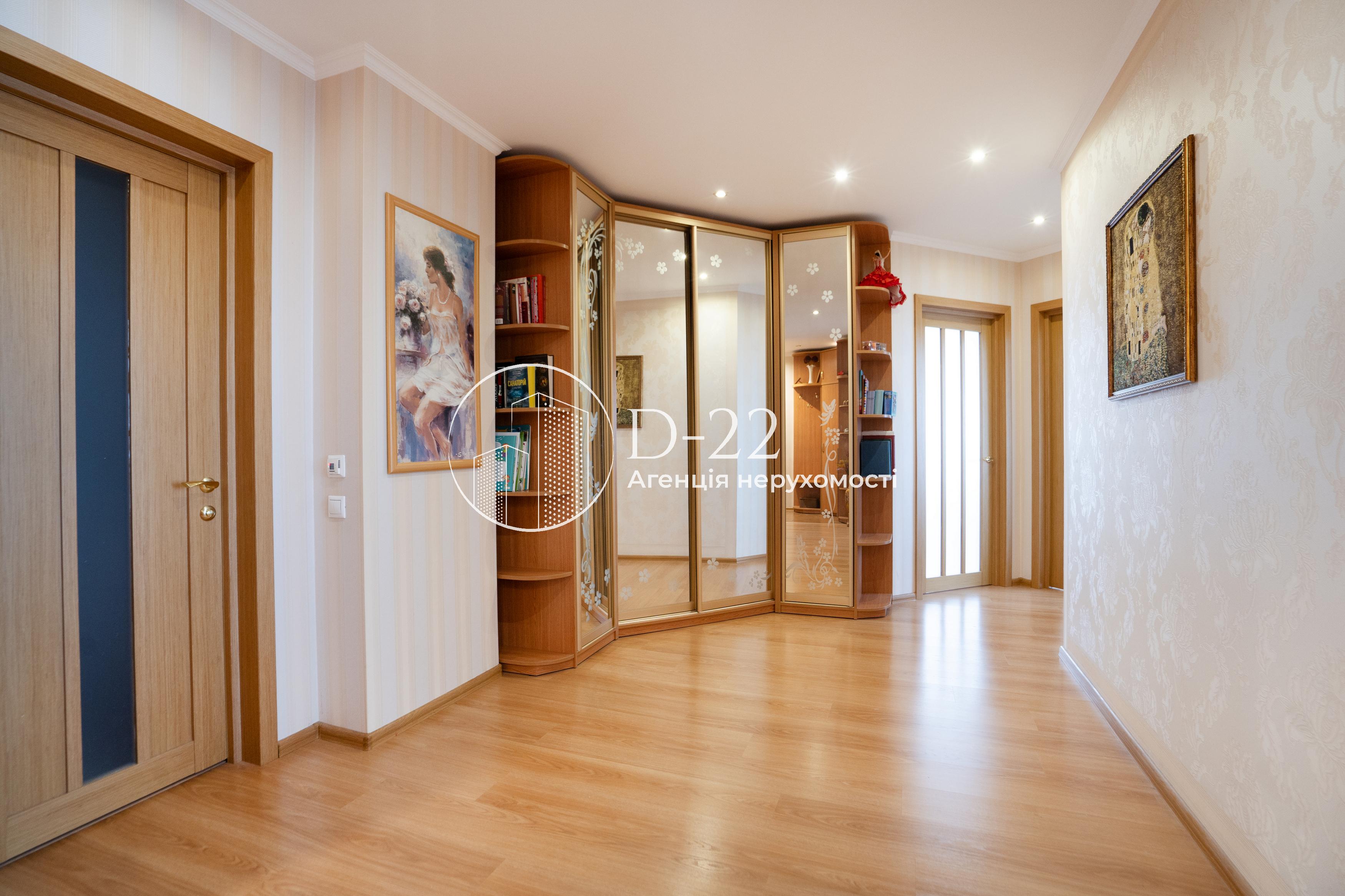 Загальна площа квартири 92 м², засклена лоджія площею 2,9 м² із вбудованою шафою. Кухня поєднана з вітальнею, їх загальна площа 30 м², 2 спальні по 14,5 м² і великий коридор площею 22 м² з об'ємною кутовою вбудованою шафою-гардеробом. Санвузол і ванна кімната окремі, підлога в них з електричним підігрівом. У ванній кімнаті стеля дзеркальна, встановлений бойлер, кутова ванна, душова кабіна, пральна машина. Вбудована кухня, всі необхідні меблі та побутова техніка. Плита та духовка електричні, є холодильник, посудомийна машина, водоочищення зі зворотним осмосом. У вітальні та спальні встановлена спліт-система, що працює на кондиціювання та обігрів, додатковий обігрів забезпечується електричним комином, що встановлений у вітальні.