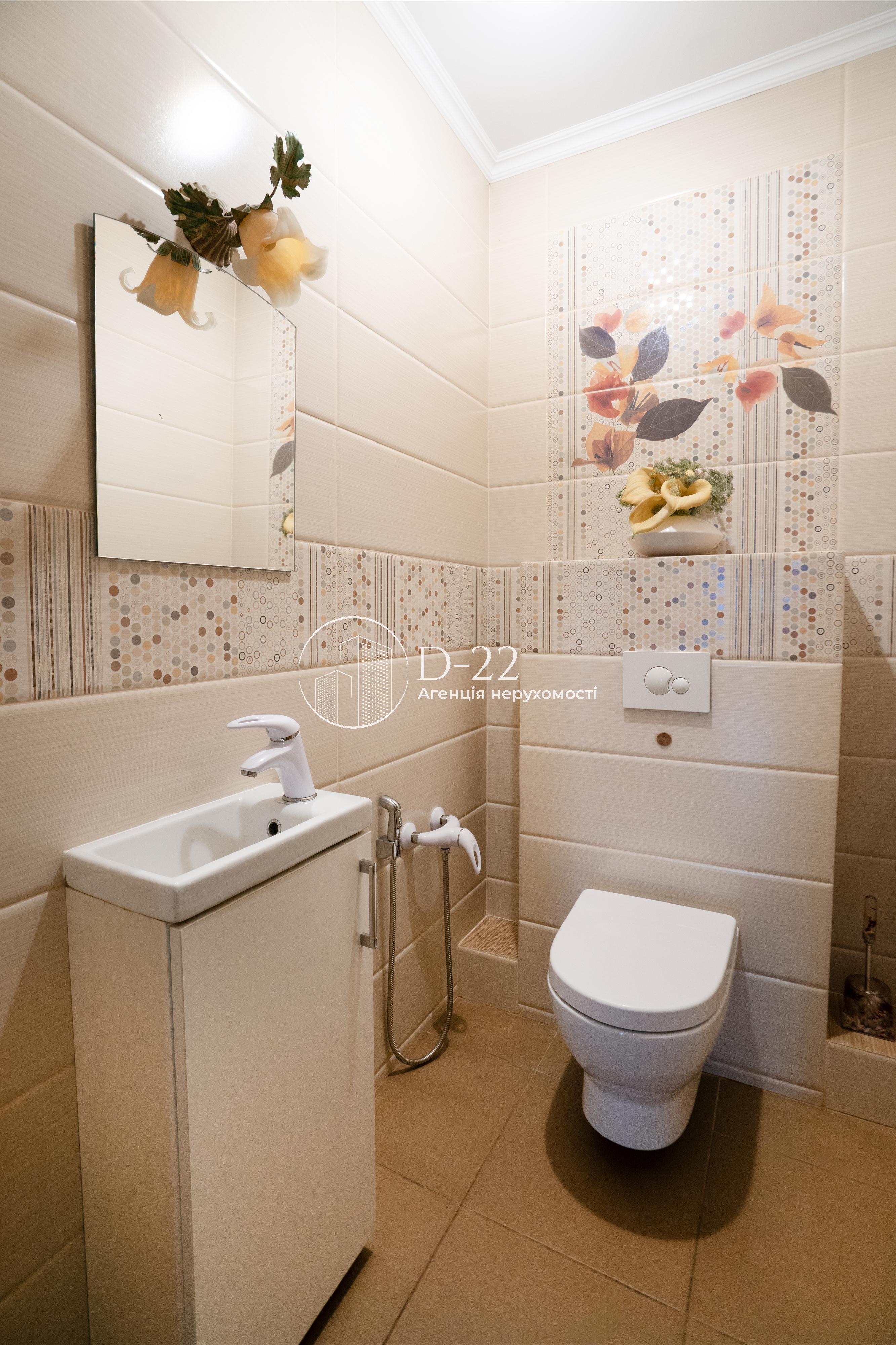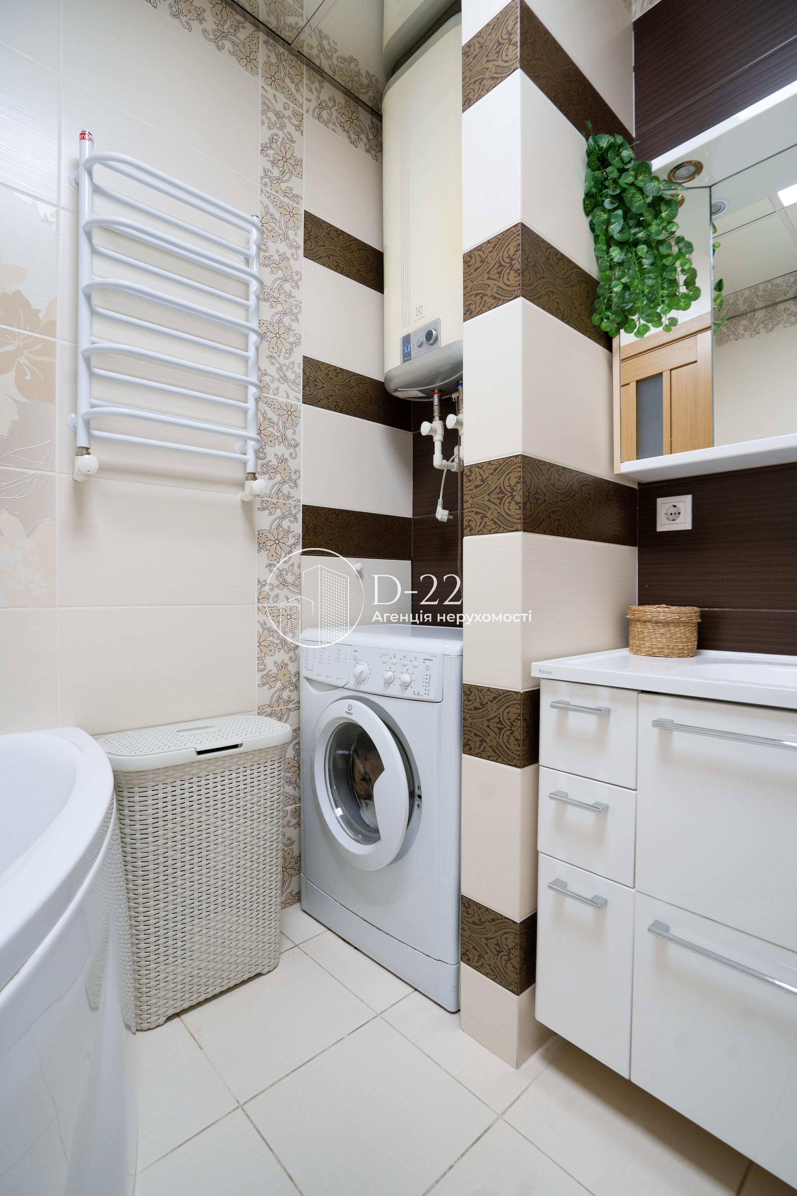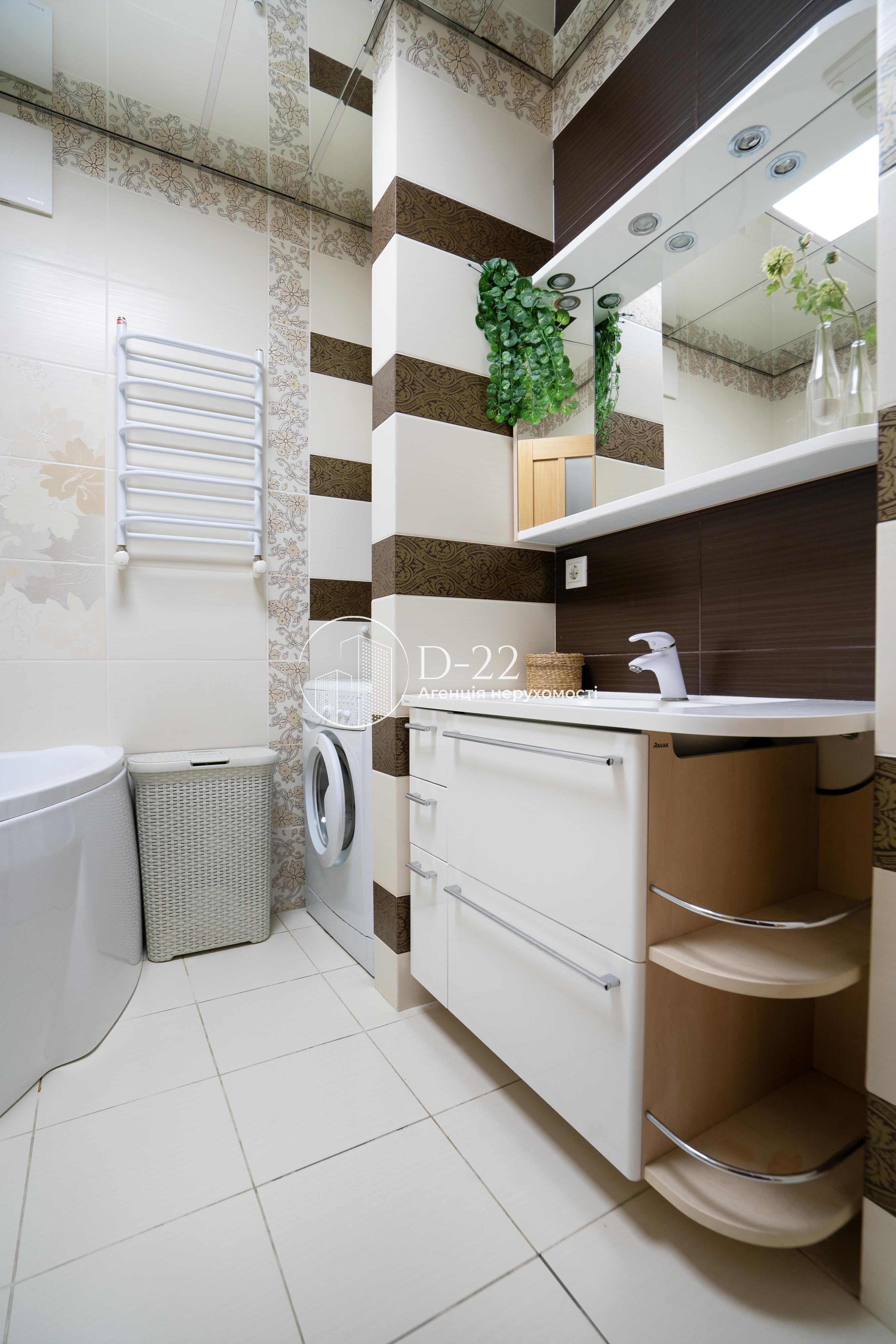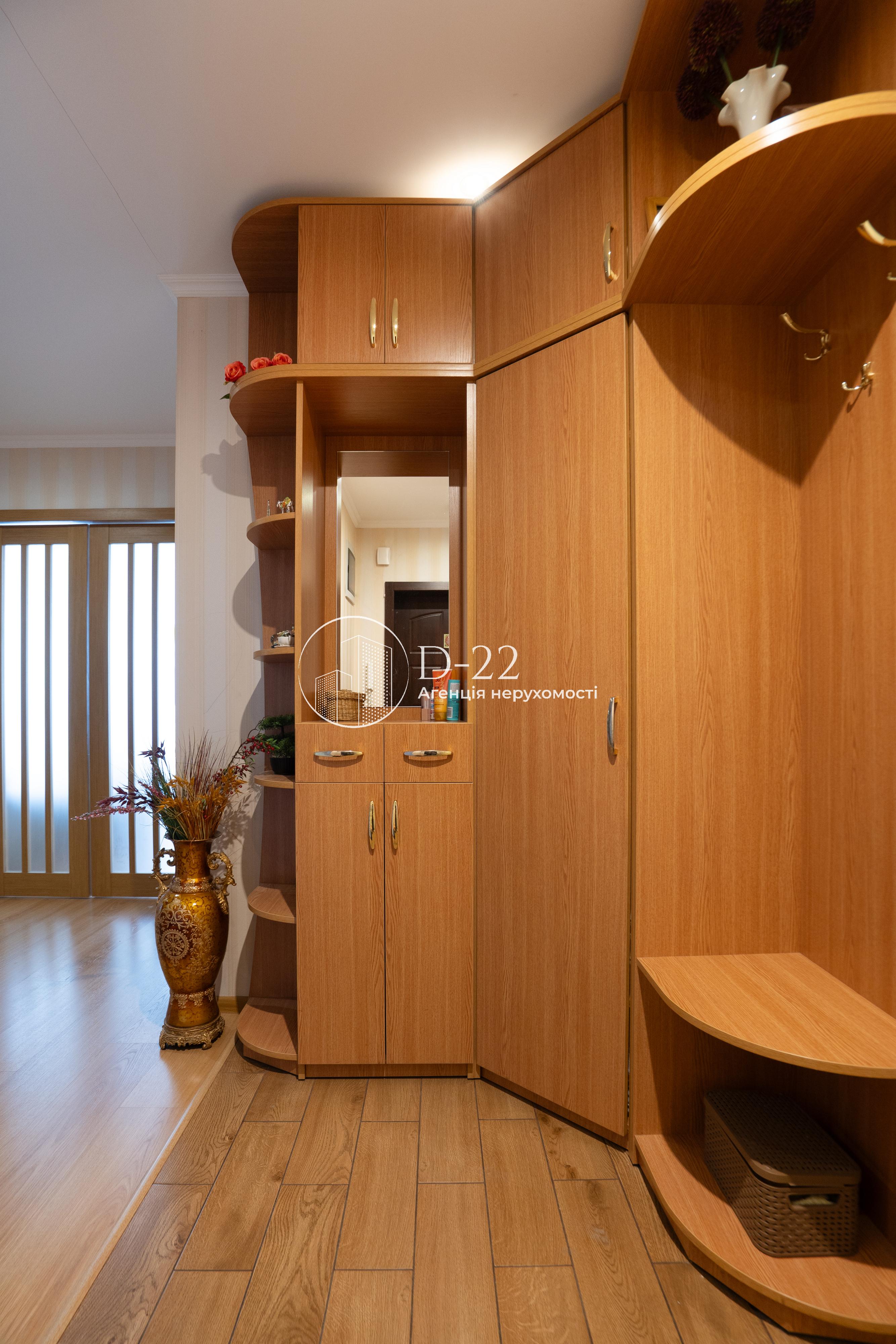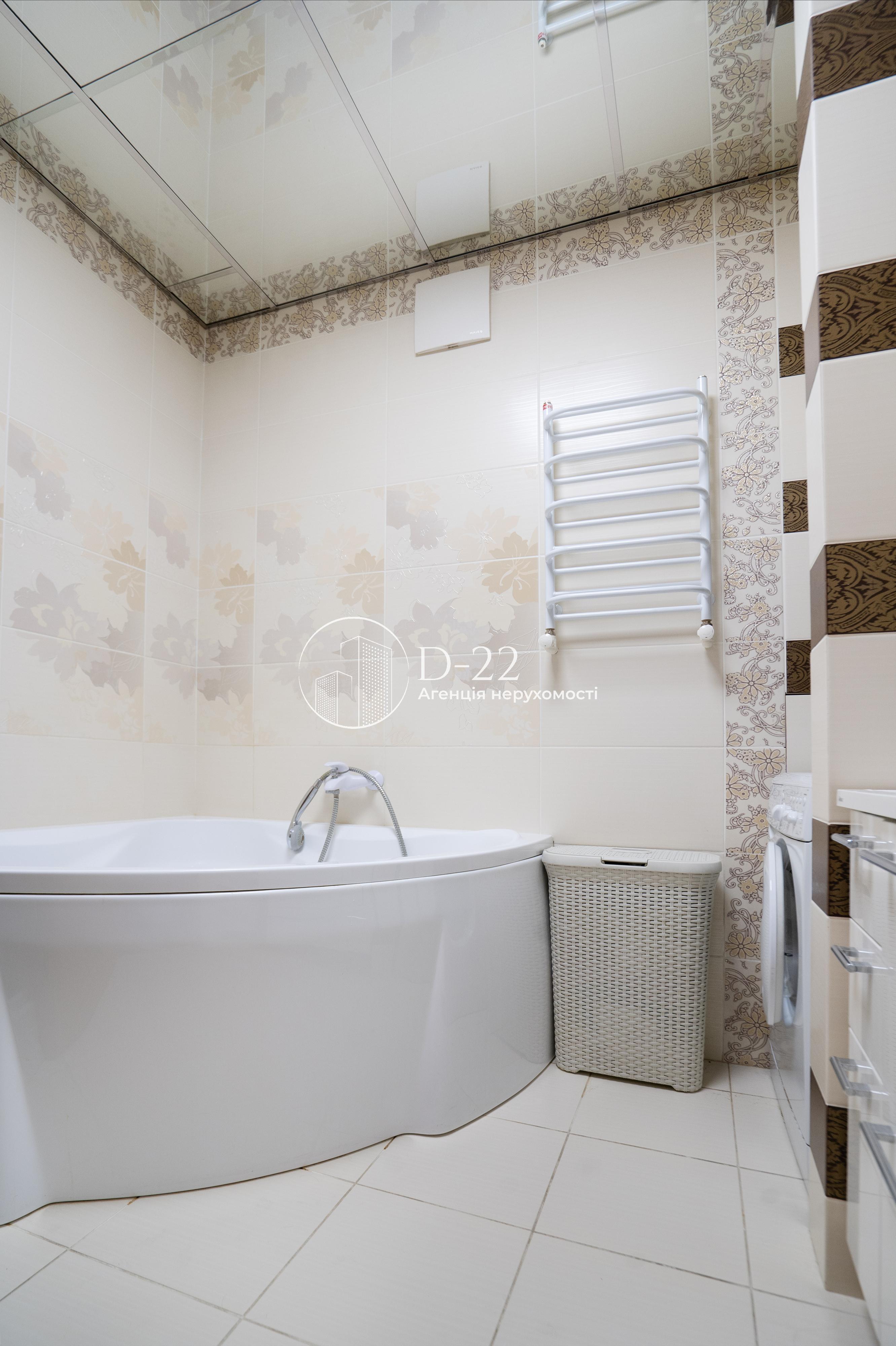 Загальна площа квартири 92 м², засклена лоджія площею 2,9 м² із вбудованою шафою. Кухня поєднана з вітальнею, їх загальна площа 30 м², 2 спальні по 14,5 м² і великий коридор площею 22 м² з об'ємною кутовою вбудованою шафою-гардеробом. Санвузол і ванна кімната окремі, підлога в них з електричним підігрівом. У ванній кімнаті стеля дзеркальна, встановлений бойлер, кутова ванна, душова кабіна, пральна машина. Вбудована кухня, всі необхідні меблі та побутова техніка. Плита та духовка електричні, є холодильник, посудомийна машина, водоочищення зі зворотним осмосом. У вітальні та спальні встановлена спліт-система, що працює на кондиціювання та обігрів, додатковий обігрів забезпечується електричним комином, що встановлений у вітальні.
